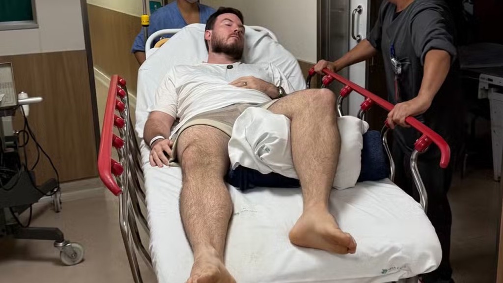 Mia, é fruto de uma barriga solidária, nos Estados Unidos. O casal está no país para acompanhar o parto e apareceu usando toucas e roupas hospitalares antes de entrar na sala cirúrgica.